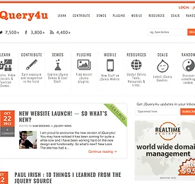 jQuery Mobile 썸네일형 리스트형 http://www.jquery4u.com/ http://www.jquery4u.com/juery4U는 제이쿼리의 예제와 데모 모바일과 강의를 겸비한 최강의 제이쿼리 사이트이다. 그냥 돌아다녀 구글링하기 전에 여기 와서 찾아 보는것도 시간을 세이브 하는 좋은 방법이다. 더보기 이전 1 다음